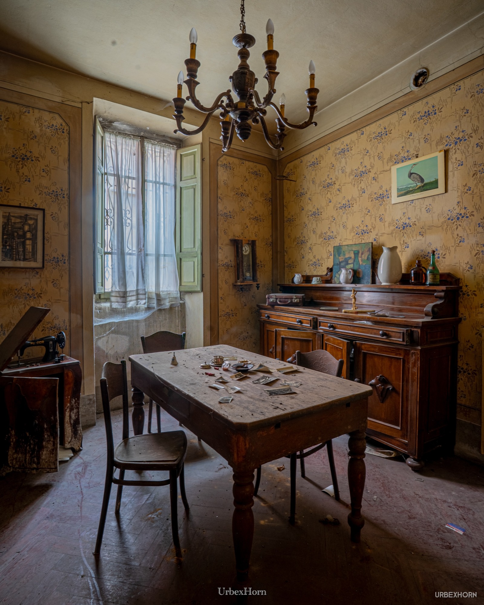 guest courtesies 10/2025 mansion The 'guest courtesies' here are a... posthumous concept. The table is set with old photos, the chairs are waiting, and the only guest here is time, which is in no rush to leave. Do come in, but don't expect a warm welcome. Photo Gallery