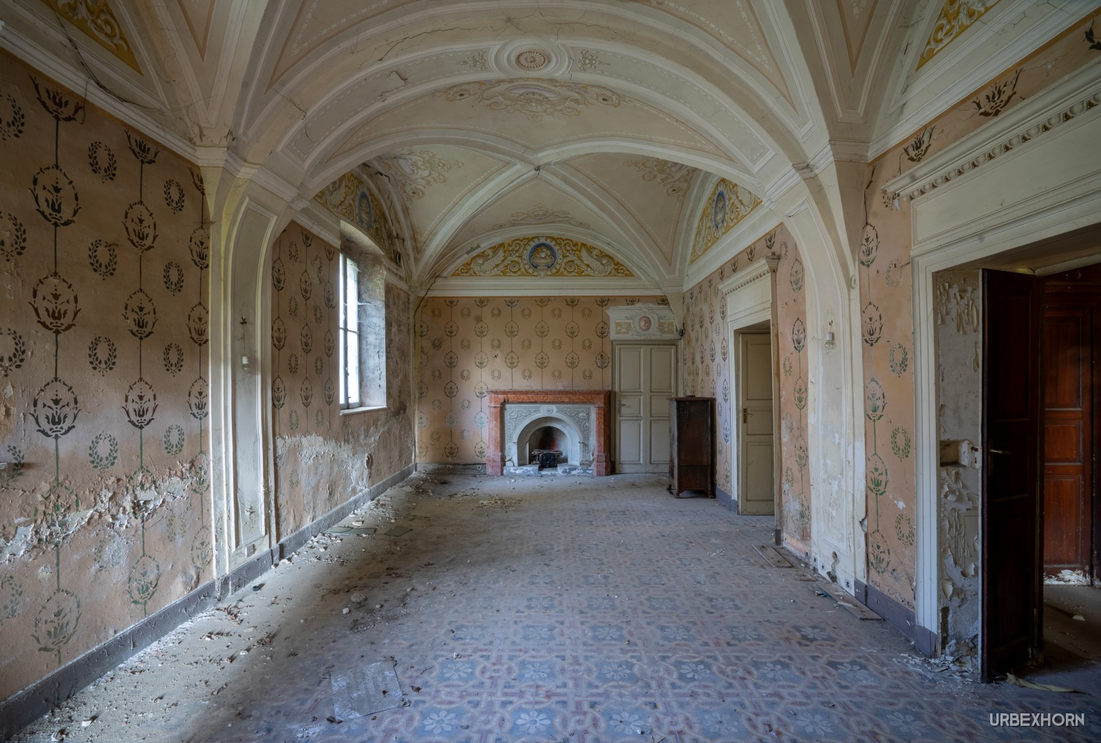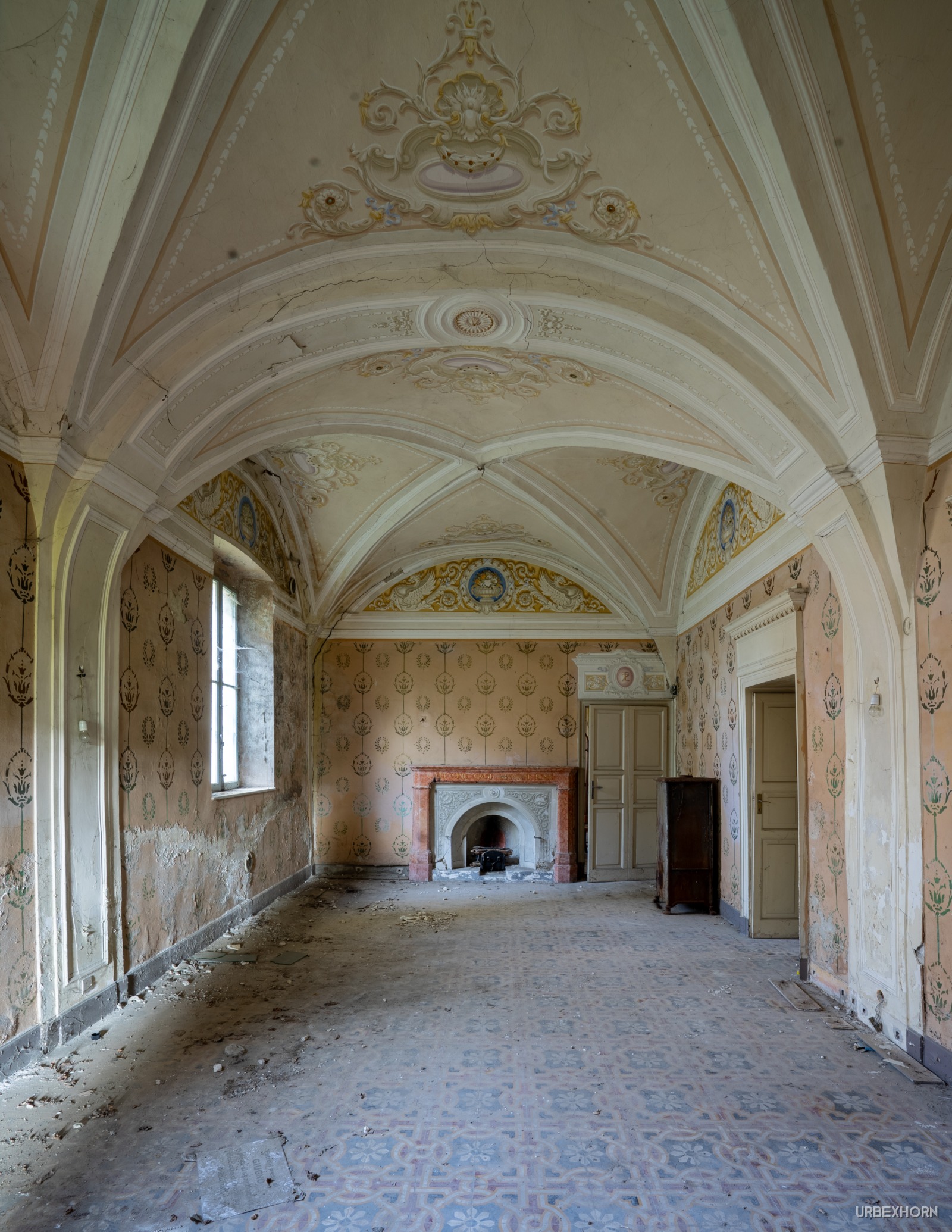 A cold fireplace, a fire that consumed itself and all its past. The Latin inscription is the final verdict on this villa: 'HIC CINIS QUOD ABSUMPTUM IGNE' ('Here is ash what has been consumed by fire'). It speaks not only of wood, but of wealth, power, and everything ephemeral. Nature is the new slow fire, and we are merely spectators of the combustion