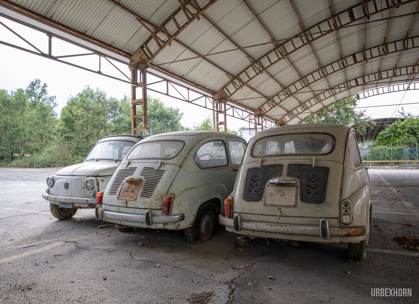 Queste piccole Fiat 600 icone del boom economico italiano, un tempo simbolo di sogni e di mobilità, ora sono solo gusci vuoti, custodi silenziosi di storie che nessuno racconterà mai più. L'hangar, con la sua imponenza spettrale, è diventato il loro mausoleo, un'enorme tomba industriale che le protegge e le nasconde dal mondo esterno.